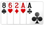 TWO PAIR : kombinasi kartu ini membutuhkan 2 pasang kartu dengan angka yang sama. Misal : 1 ♣ ¨C 1♦ ¨C 8 ¨C 8♦ ¨C 2 ♠atau 10 ♣ ¨C 10♦ ¨C K ♠¨C K♦ – Q ♣