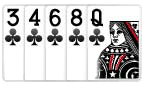 STRAIGHT : kombinasi kartu ini sama dengan STRAIGHT FLUSH, bedanya kalau STRAIGHT tidak memandang bunga, bunganya boleh bebas , misal : 4 ♠¨C 5♥ ¨C 6♦ ¨C 7 ♣ ¨C 8♦ atau 10♥ ¨C J ♣ ¨C Q ♠¨C K♦ – As ♣